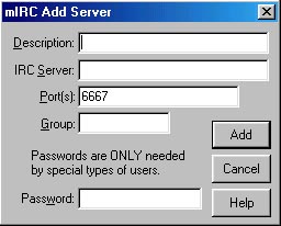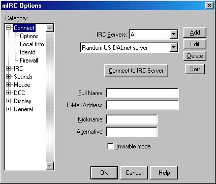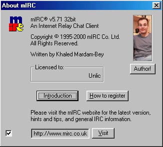 Everyone in the guild is required to be in IRC as much as possible. If you're new to IRC, getting started is easy. First, download MIRC from www.mirc.com and install it. When you start IRC you'll see this annoying graphic: