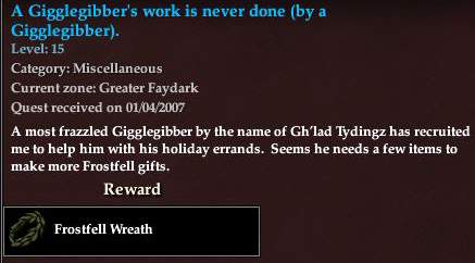 Upon returning to my fair city, I go to Mr. Gh'lad Tydingz (Oh SoE, you rascals and your subtle word play!) to get paid.