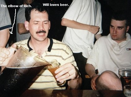 So with the end of the streak, the gambling session ended, and we went back to less stressful activity. We played another game of Anchorman, this final game with Will landing all 3 American quarters, and Craig sucking down the rest of the pitcher. At this point, Craig is in the state shown in the first picture of the big ass pitcher, which happened to be very, very, drunk. We'll touch on that later, when he would make himself the hero of the day.