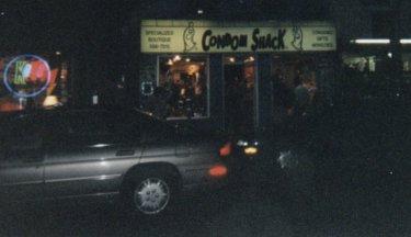 We awoke the next morning and took to the airport, where Azash had picked up Aztek, drank a few over-priced beers at the mini-bar there, and then headed to lunch downtown, where Rich would later threaten to kill and rape the waitress for looking at him in Canadian. What a bitch. I can't remember the name of the joint, but I do remember it was across the way from your everyday condom shack featured below.