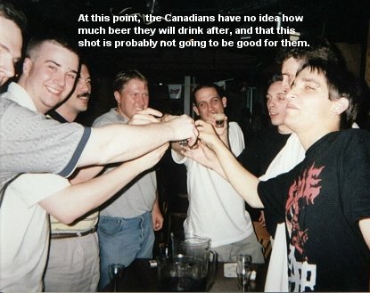 This is pretty much the turning point in the evening where any chances of the Canadians waking up in the morning feeling fresh and cheery are obliterated. We'll get to that. First, let's have a shot.